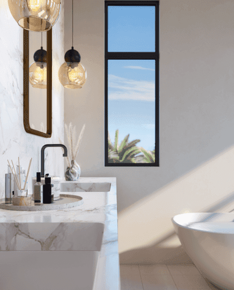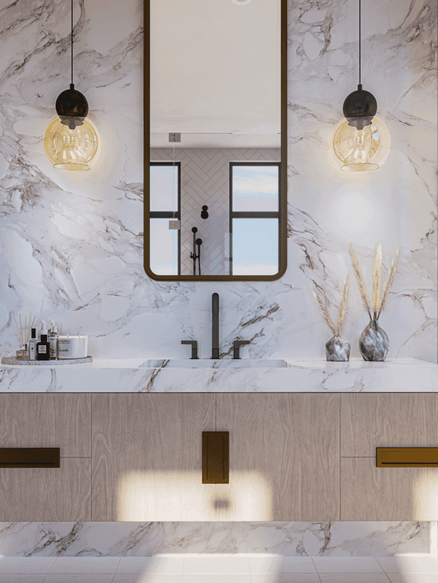 Parkhouse Residences 30 units of floor and wall bathroom/shower tile, kitchen island countertops, balcony porcelain pavers, and fireplace hearth & surround slabs Address: 4239 Uptown Newport Dr., Newport Beach, CA 92660 General Contractor: KPRS, Inc.